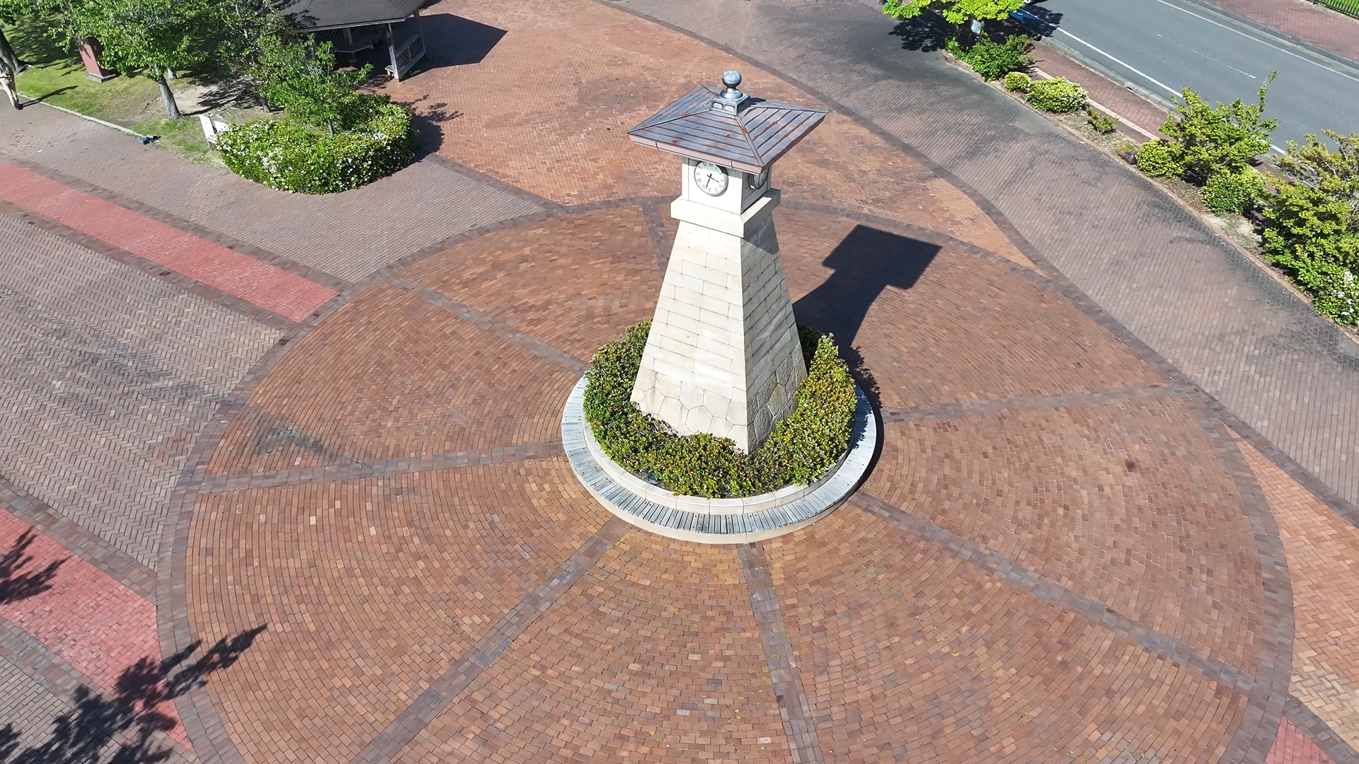 ・時計塔 ・時計塔周辺レンガ舗装 ・北半球地図デザインタイル舗装